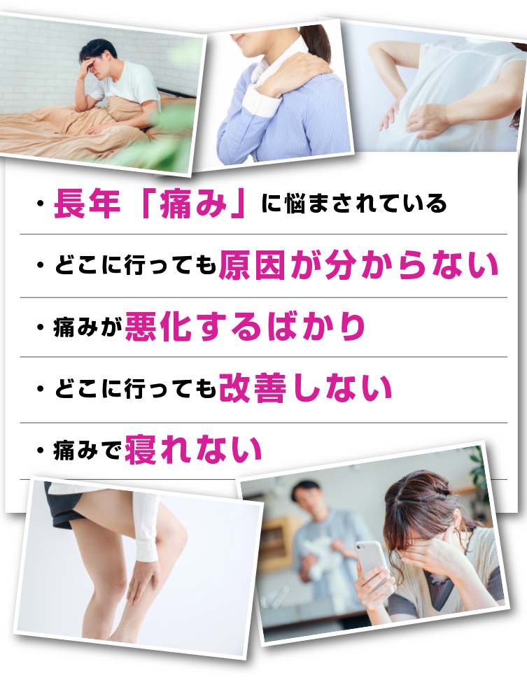 「異常なしと言われた」「どこへ行っても改善しなかった」という方は是非一度お越し下さい。